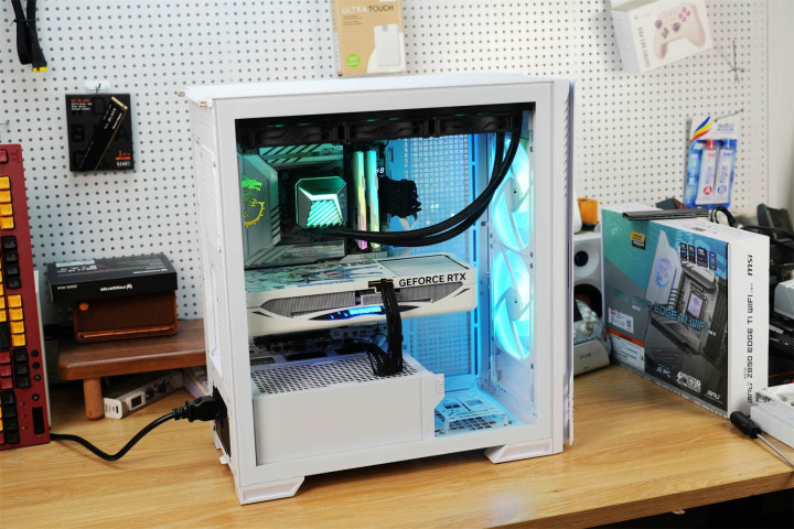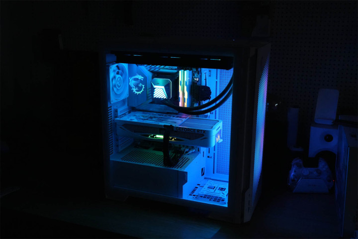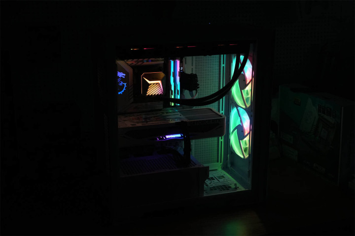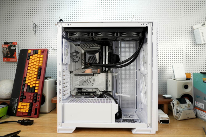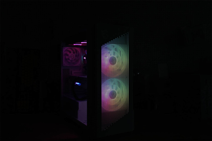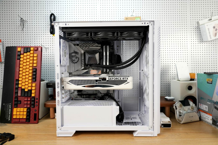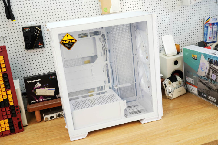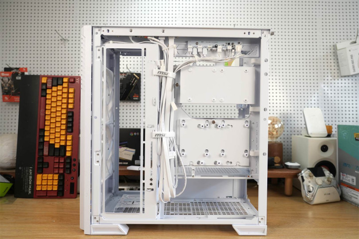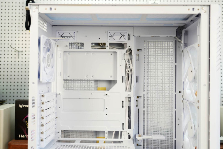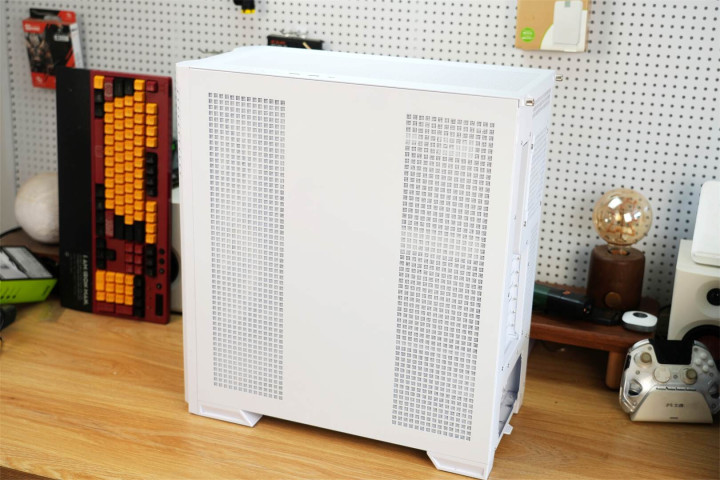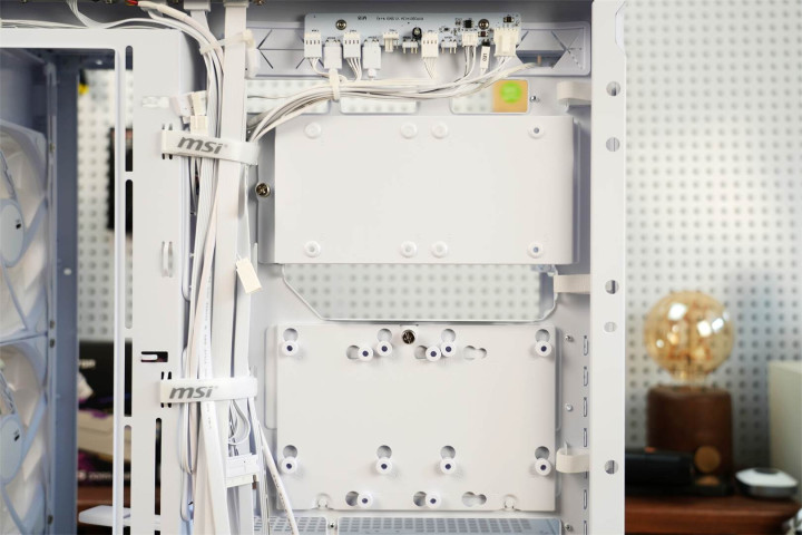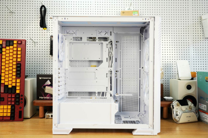 模块化设计渗透于整体架构之中,主板托盘区域提前规划好散热孔位与理线空间,机箱背面配备多个魔术扎带,硬盘挂载部分皆采用可拆卸构造,在保障扩展能力的同时维持视觉上的简洁。