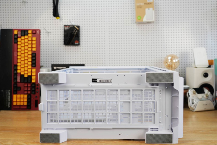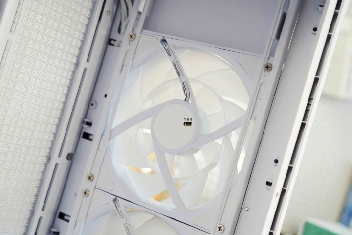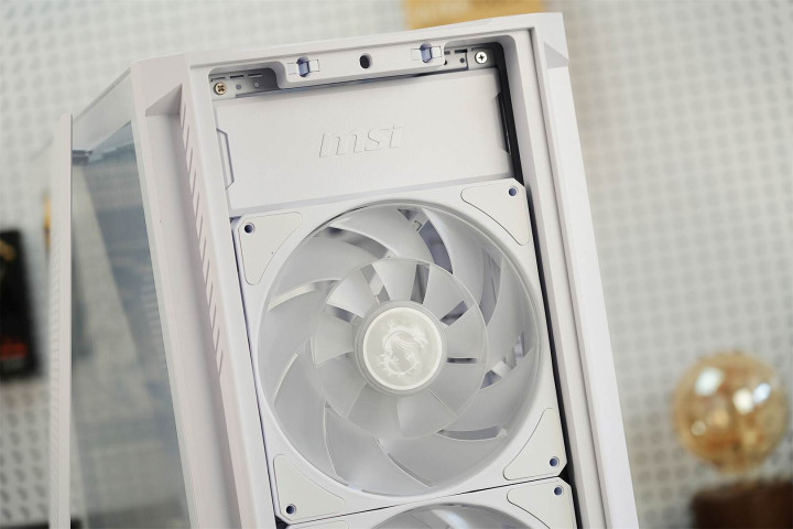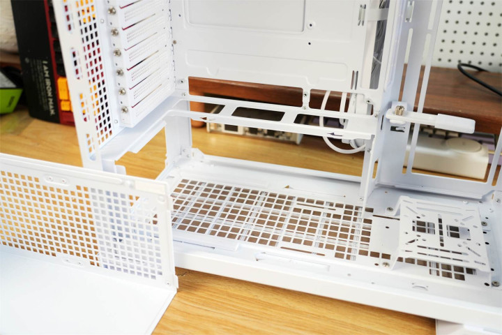 机箱在顶部与底部均设置了可拆卸的防尘网。顶部空间能安装360mm冷排,或同时装上三把120mm风扇;电源仓上方可容纳两把120mm风扇;尾部则支持120mm风扇,方便用户按需构建立体化散热体系。