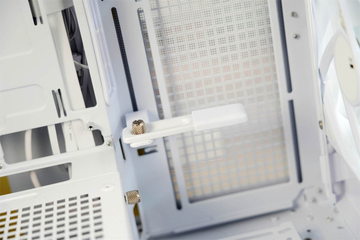 机箱内部贴心预装了显卡支撑架,其创新采用多段式垂直调节机构搭配水平旋转轴设计。用户能够依据显卡的实际尺寸,灵活自如地调整支撑高度,为高端显卡提供稳固支撑,有效避免因显卡过重而引发的接口松动、主板变形等问题。