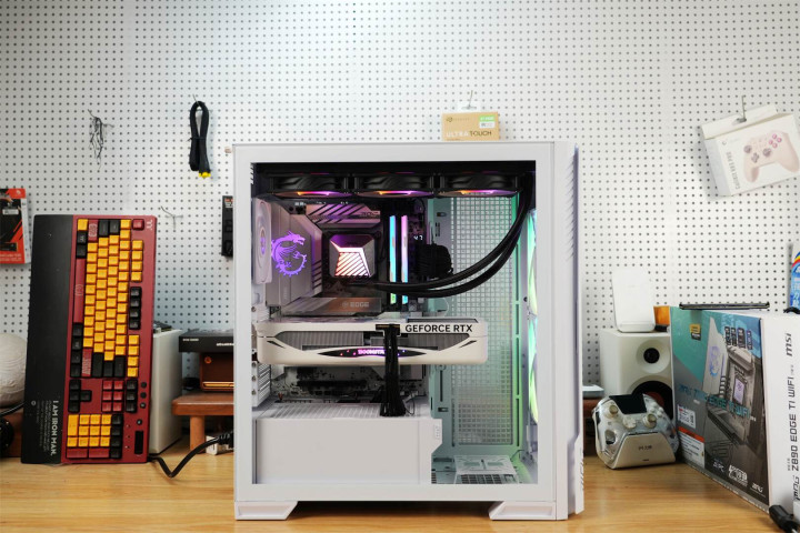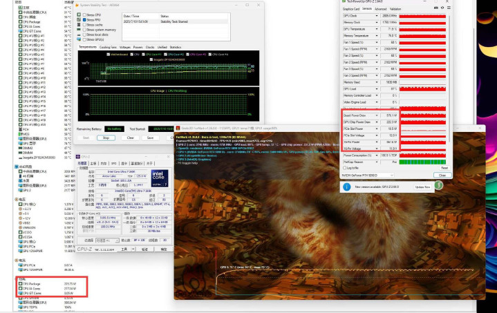 双烤,英特尔® 酷睿™ Ultra 7 处理器 265K功耗为220W,显卡为578W,一共798W,对于额定功率1600W的微星MEG Ai1600T PCIE5超神电源来说游刃有余,即便是后期升级RTX60系顶级显卡也没有丝毫问题。