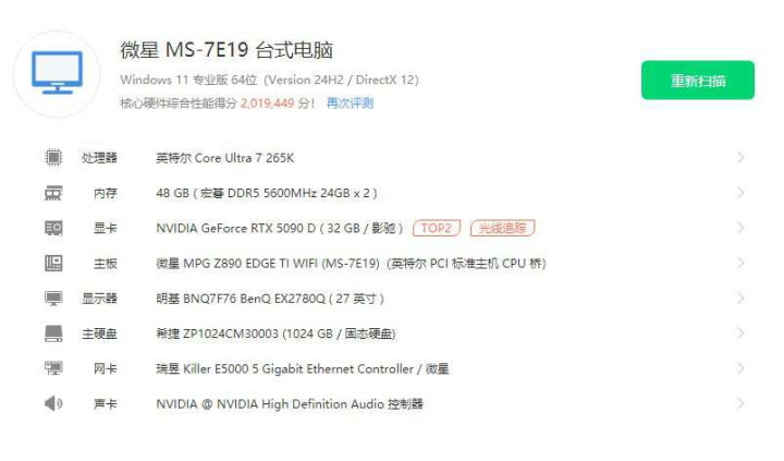 电脑型号:微星 MS-7E19 台式电脑
